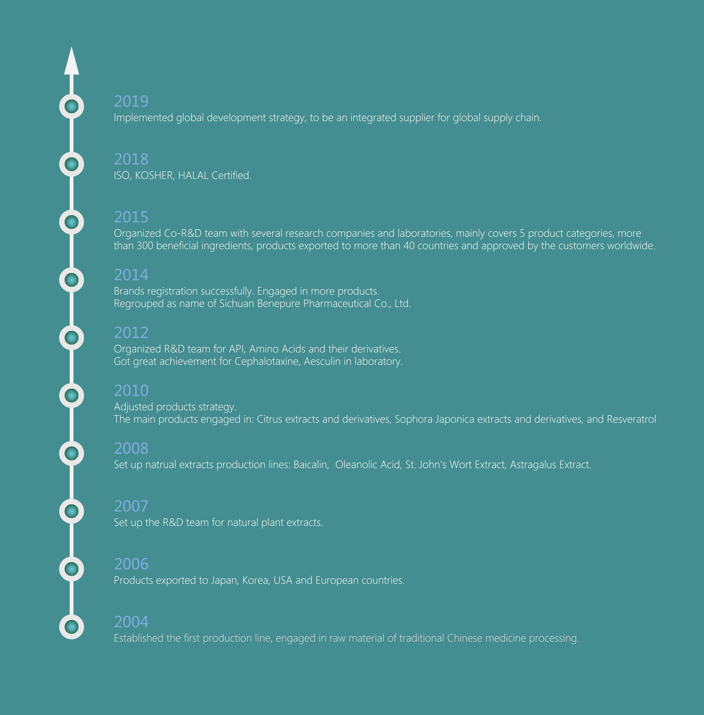 Benepure devotes itself to be an integrated supplier for the global supply chain, striving for pharmaceutical, veterinary, cosmetics, natural foods, and animal nutrition industries worldwide.